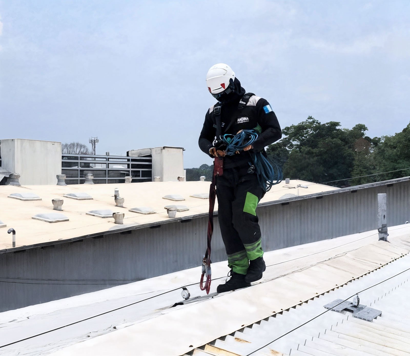 Diseñamos e instalamos sistemas de protección contra caídas certificados bajo los estándares de la norma EN795 ABCD.