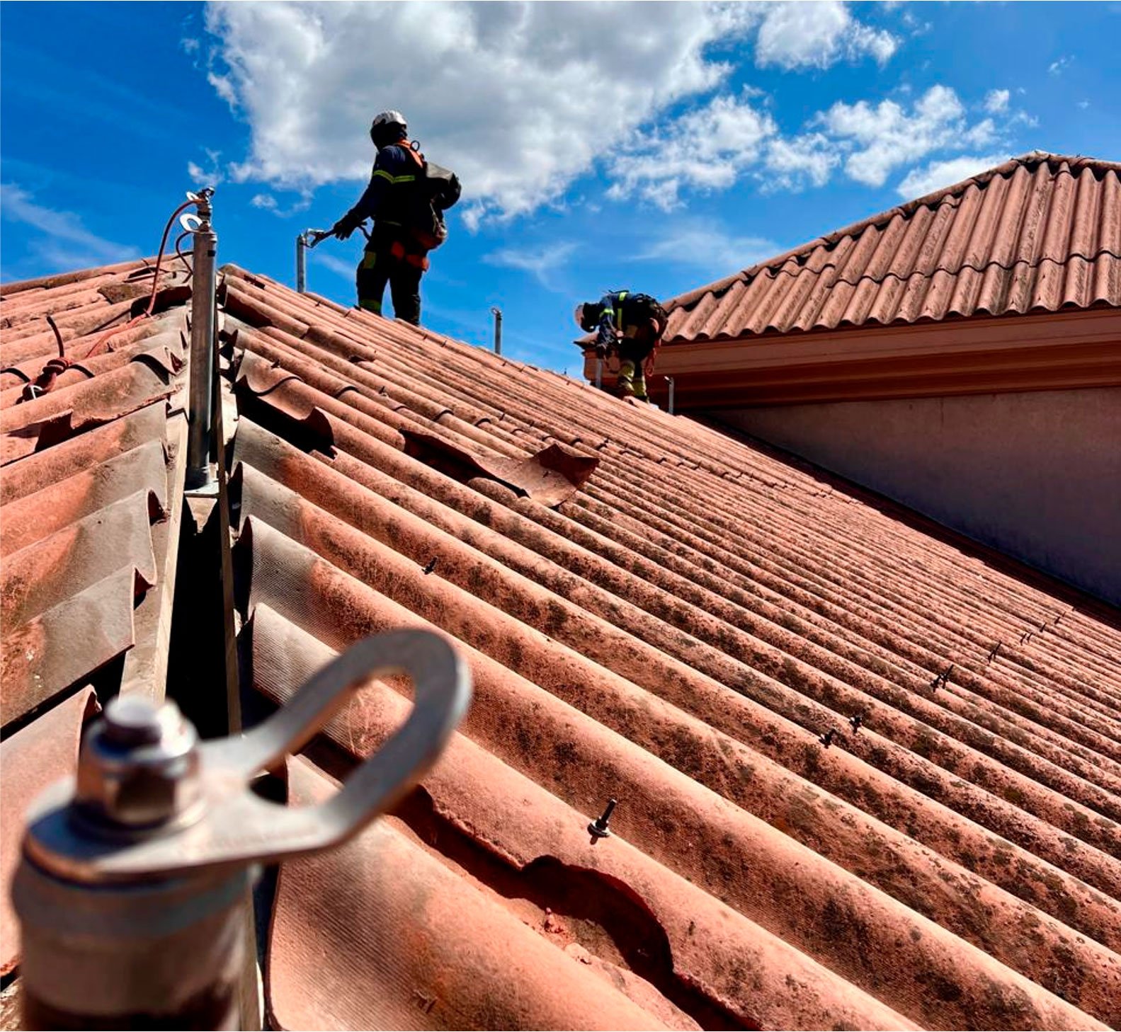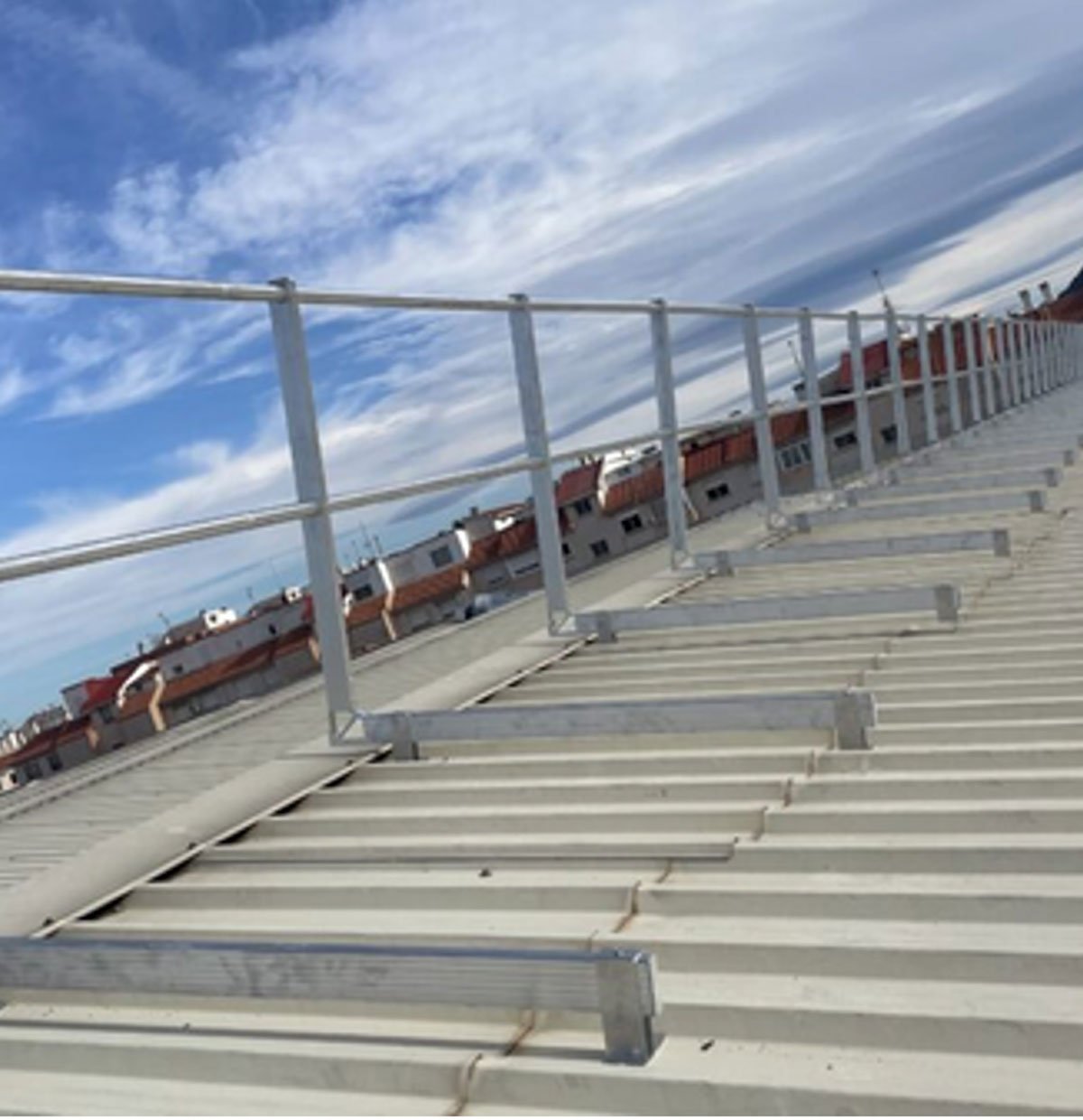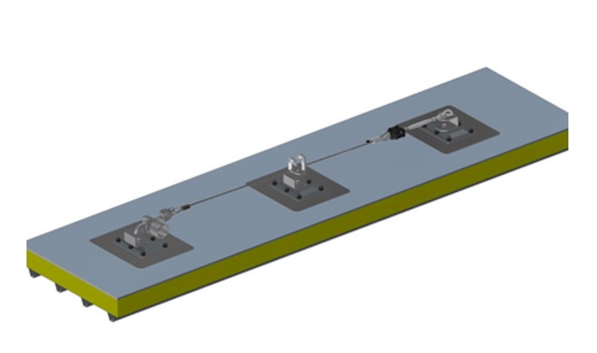 Línea de Vida para Cubierta Panel Sándwich (chapa + aislamiento + impermeabilización) homologada para cuatro usuarios