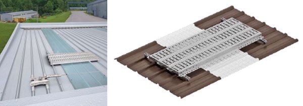 Pasillos técnicos, caminamientos sobre traslucidas y recorridos sobre cubiertas, útiles en techos con paneles solares / adaptables a lamina trapezoidal / KR18 / Panel Sándwich.